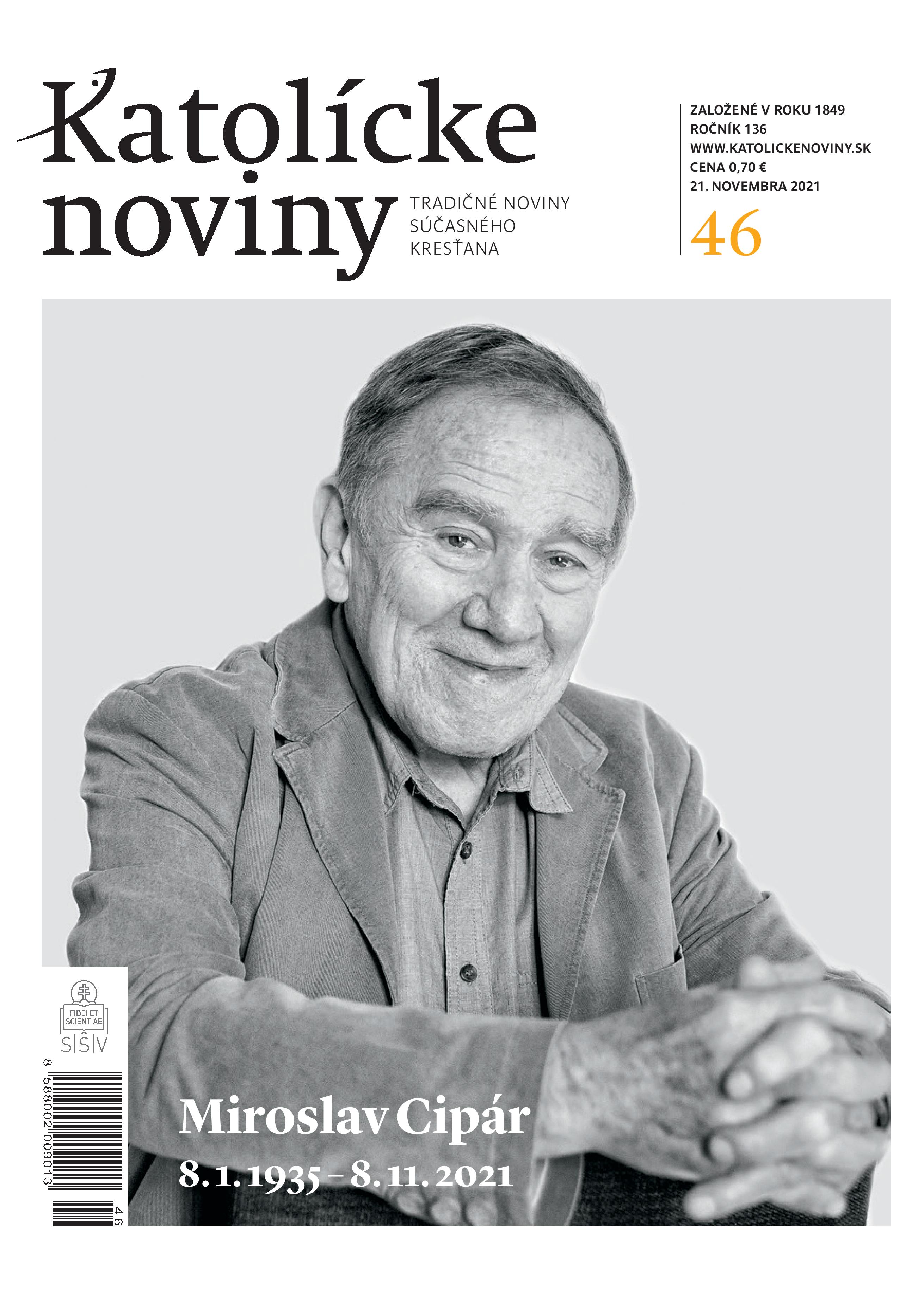 Pripomínajú si život a dielo zosnulého akademického maliara Miroslava Cipára. V pondelok 8. novembra odovzdal svoju nesmrteľnú dušu do rúk Pána života a smrti akademický maliar Miroslav Cipár. Počas uplynulých jedenástich rokov veľmi úzko spolupracoval s Katolíckymi novinami a ich vydavateľom - Spolkom svätého Vojtecha, pre ktorý ilustroval knižné skvosty, ako bol Faust a Božská komédia, ale aj veľkolepé dielo Dômyselný rytier don Quijote de la Mancha, ktoré sa v nastávajúcich dňoch dostane na pulty slovenských kníhkupectiev.