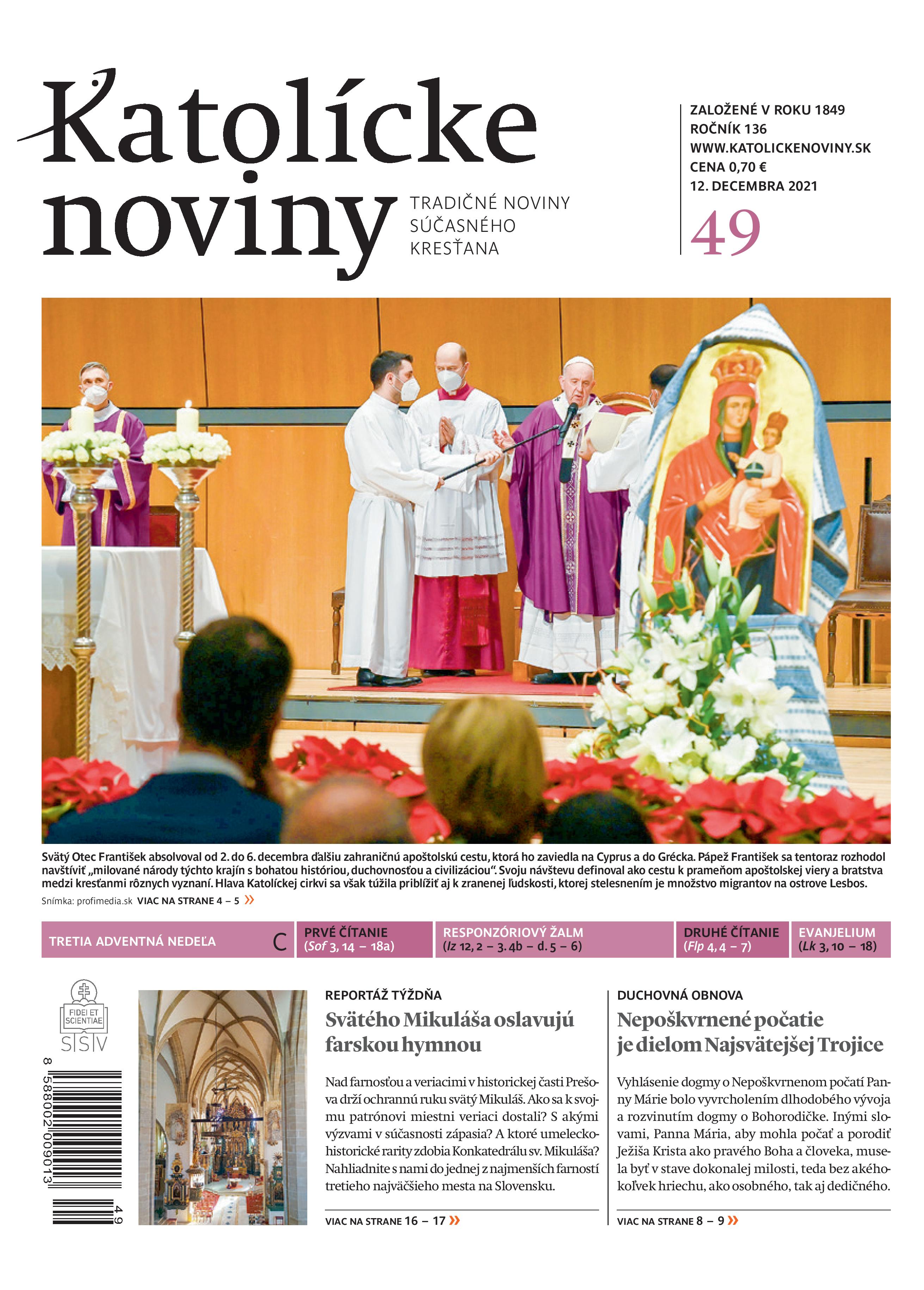 Katolícke noviny vás stále pozývajú zapojiť sa do veľkej predplatiteľskej súťaže. Ak si do 17. decembra 2021 objednáte a zaplatíte ročné predplatné na rok 2022, budete zaradení do žrebovania o 40 hodnotných cien. Vyhrať môžete napríklad zariadenie do študentskej izby, víkendový pobyt v kúpeľoch či tridsaťdielny porcelánový servis. Každý nový predplatiteľ navyše dostane ako darček knihu rozhovorov pápeža Františka a Marca Pozzu O nerestiach a čnostiach.