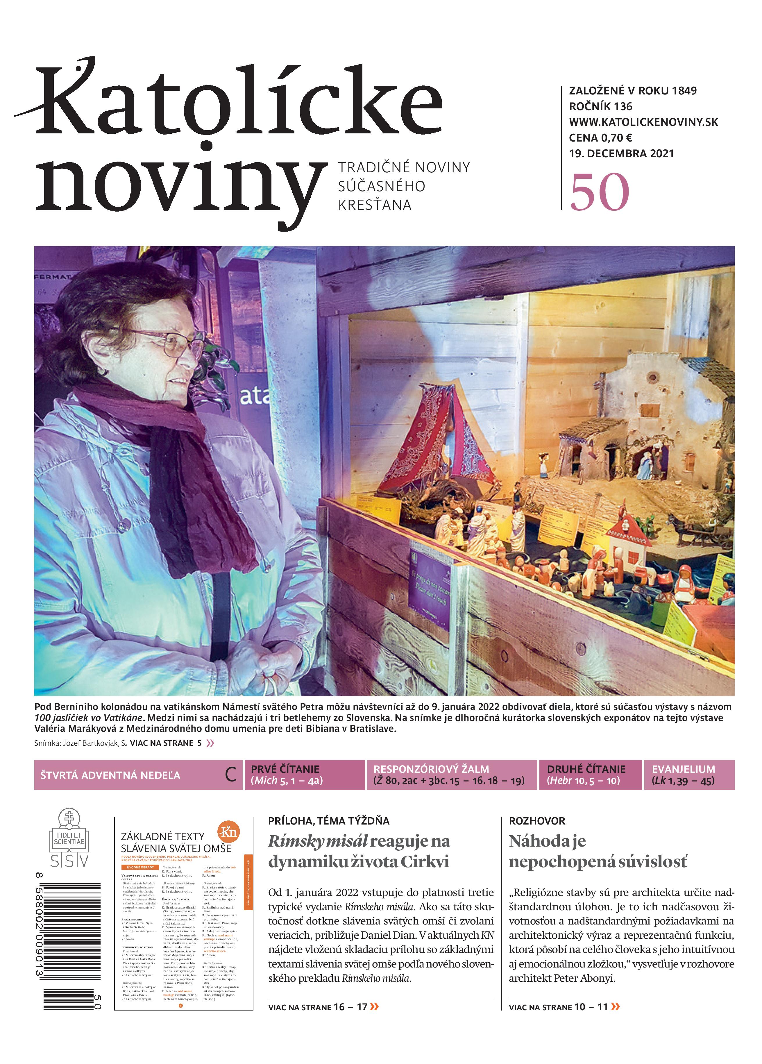 Najnovšie Katolícke noviny prinášajú skladaciu prílohu so základnými textami slávenia svätej omše podľa nového slovenského prekladu Rímskeho misála, ktorý sa začne záväzne používať od 1. januára 2022.