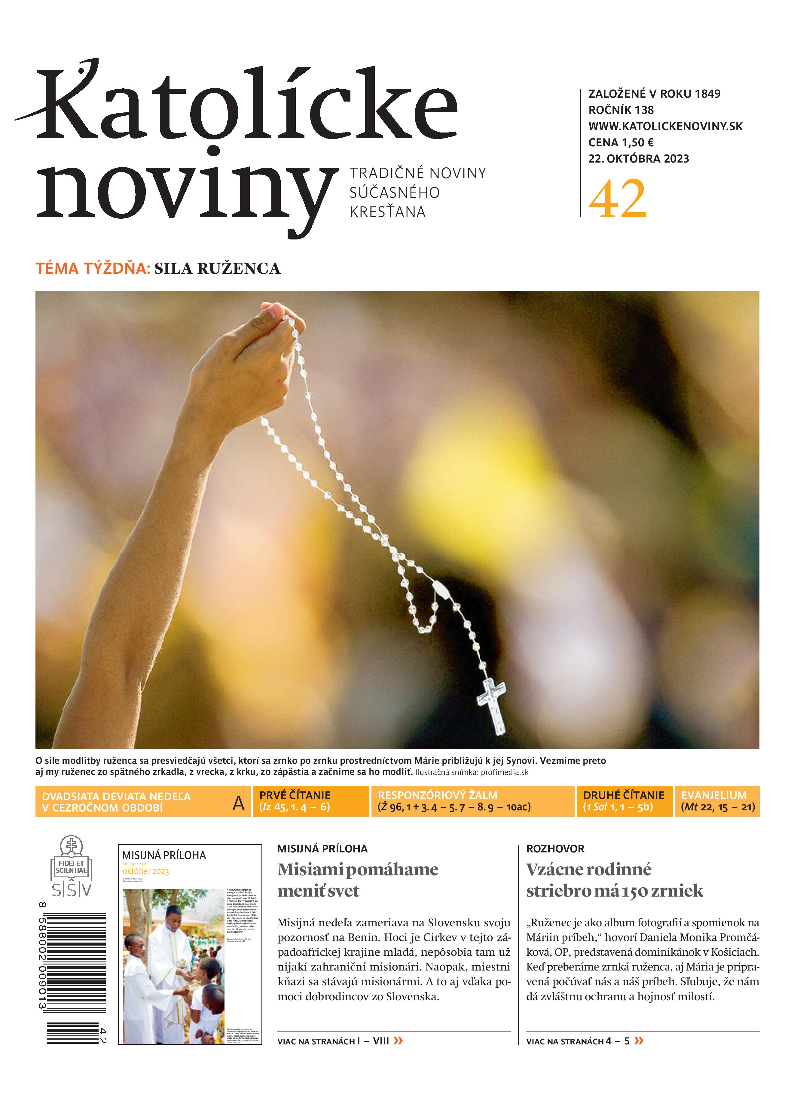 Najnovšie Katolícke noviny sa venujú téme modlitby posvätného ruženca. Je to duchovný liek na každý deň. Prinášajú niekoľko konkrétnych príkladov, akú silnú moc mal a vždy má.