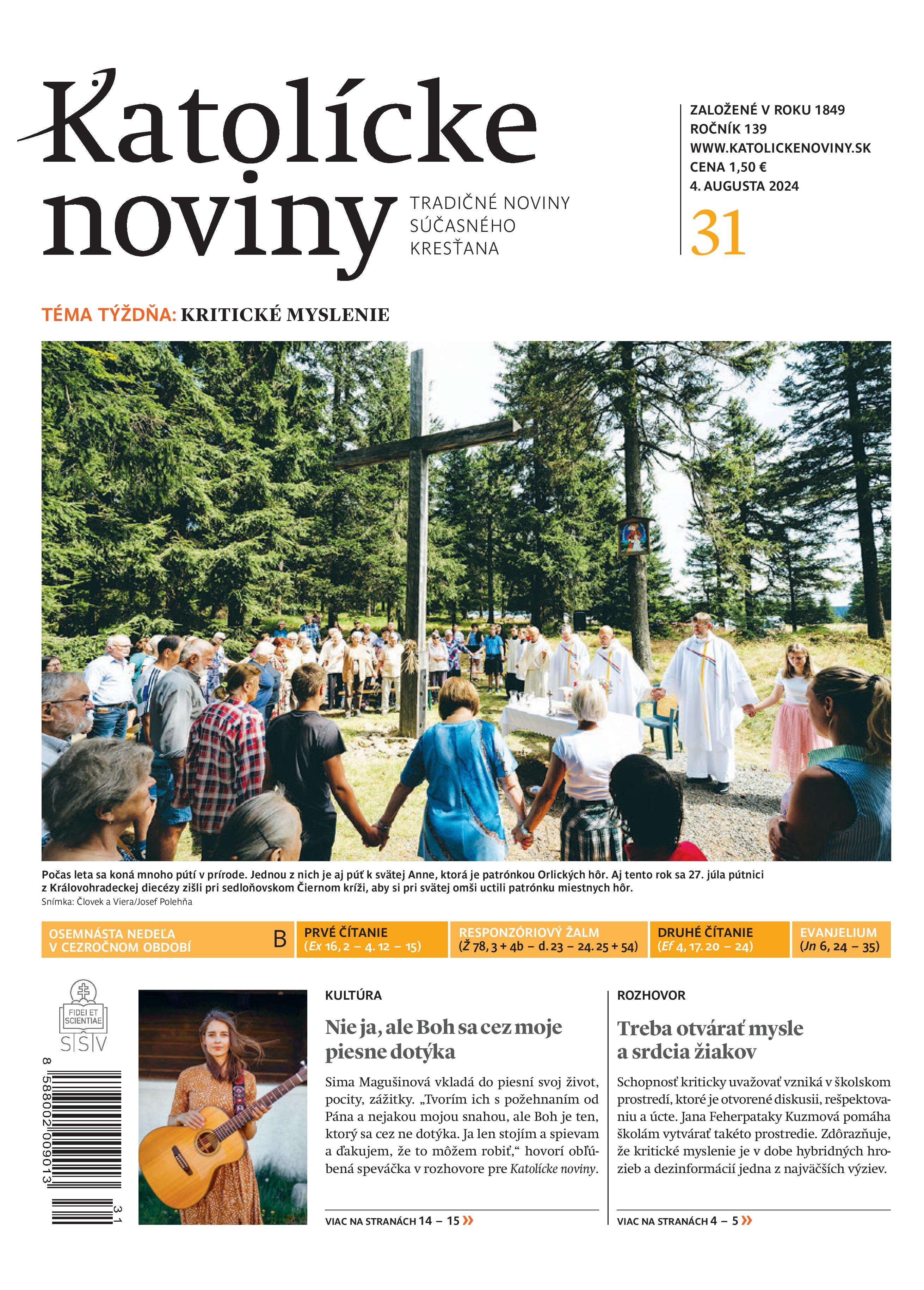 V rubrike Kultúra sa rozprávajú so speváčkou Simou Magušinovou, ktorá pootvorila dvere do svojej tvorby i duchovného života. „Vždy hovorím, že nie ja, ale Boh sa dotýka. Ak chce, nech sa dotýka cezo mňa; ak chce, nech sa dotýka cez iných. Nechávam to celé na ňom.“