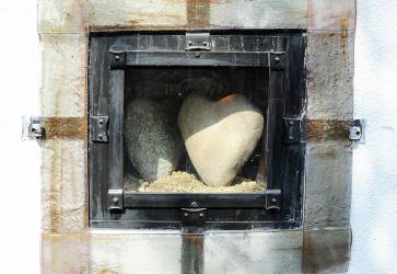 Drôtená plastika Ježiša Krista je dielom Zoltána Csemniczkého z Balassgyarmat, jeho srdce vytvoril akademický sochár Miloš Balgavý z Trnavy. Snímka: Peter Hupka