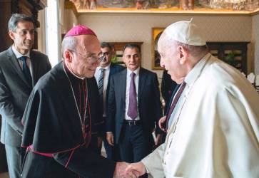 Don Fekete počas osobnej audiencie náboženských predstaviteľov Azerbajdžanu u Svätého Otca 13. januára 2022 Snímka: archív Vladimíra Feketeho