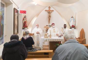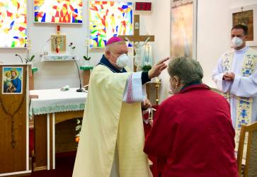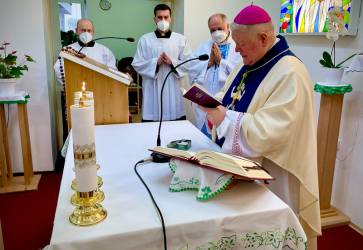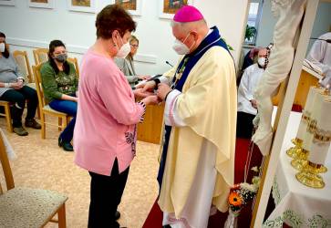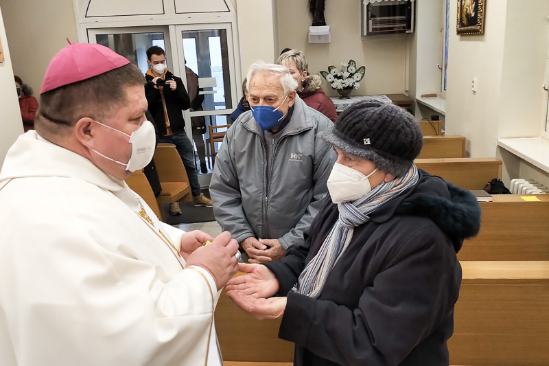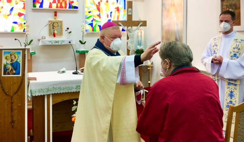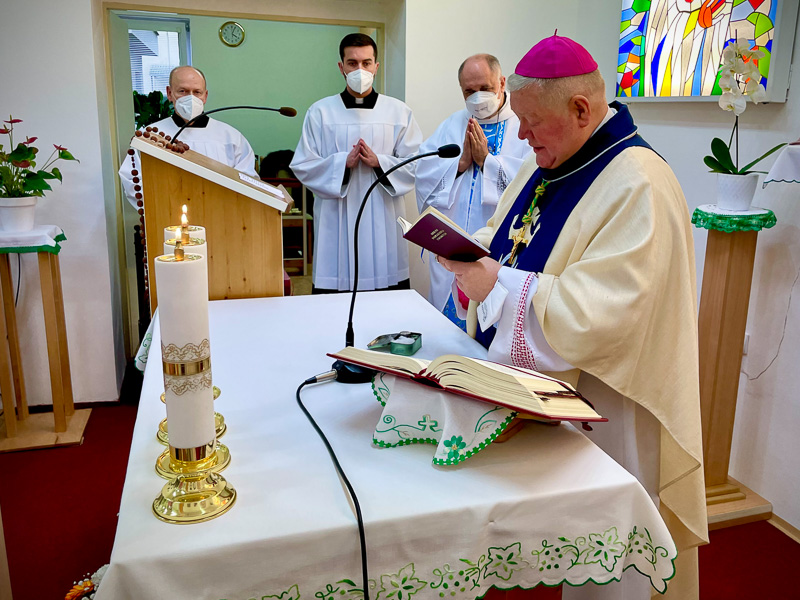 Nitriansky biskup Viliam Judák celebroval svätú omšu v Kaplnke Najsvätejšieho Srdca Ježišovho vo Fakultnej nemocnici v Trenčíne. Snímka: archív NRB