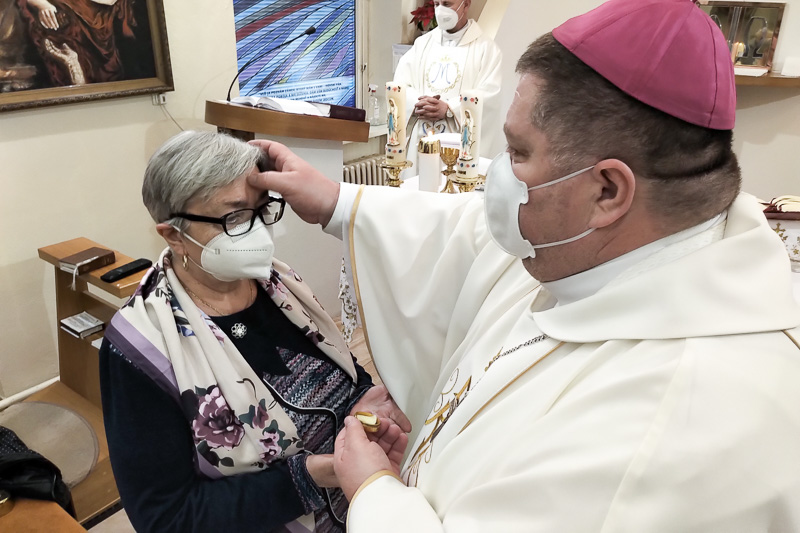 Aj nitriansky pomocný biskup Peter Beňo navštívil pacientov, konkrétne tých v nitrianskej fakultnej nemocnici. Slávil s nimi svätú omšu v Kaplnke sv. Alžbety Uhorskej. Snímka: archív NRB