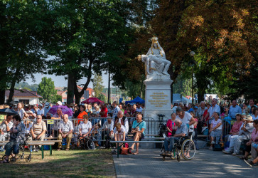 Pútnici pri soche Sedembolestnej Panny Márie.