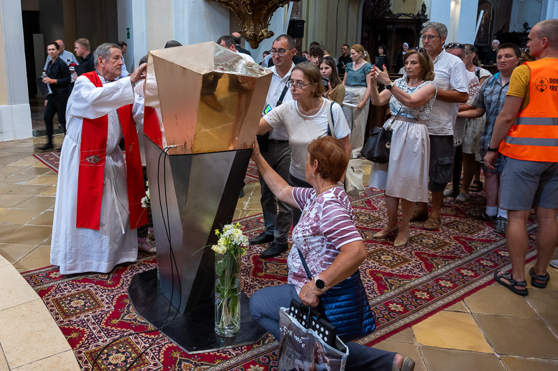 Pútnici sa pri relikviári modlili na príhovor nového blahoslaveného.