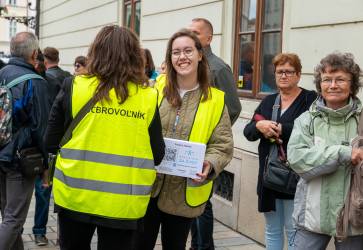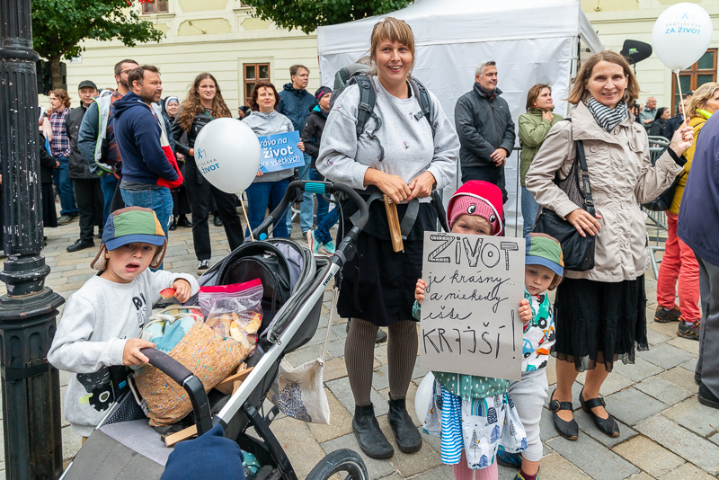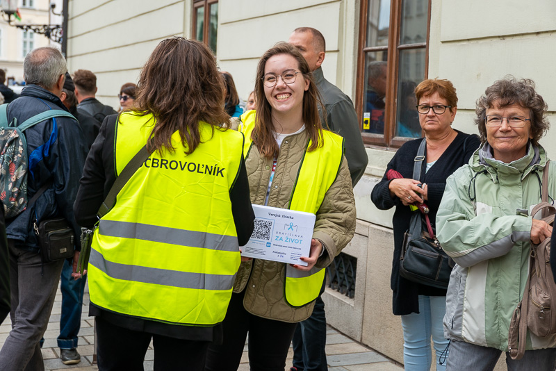 Približne tritisíc ľudí prišlo 24. septembra na Hlavné námestie na podujatie Bratislava za život 2023. Snímka: KN/Erika Litváková