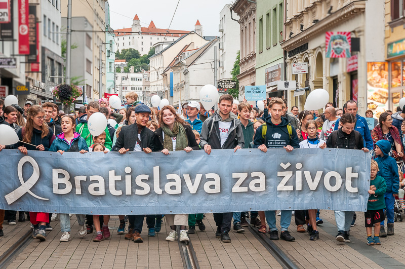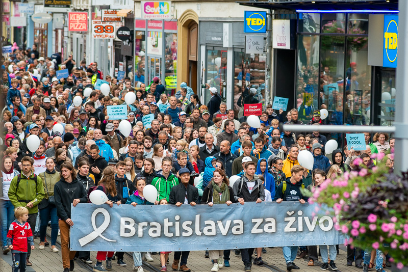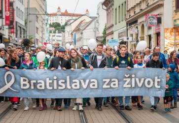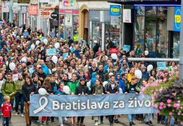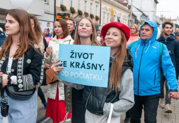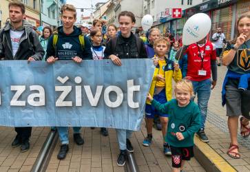 Ľudský život si treba ctiť od počatia po prirodzenú smrť – zaznelo na pochode. Snímka: KN/Erika Litváková
