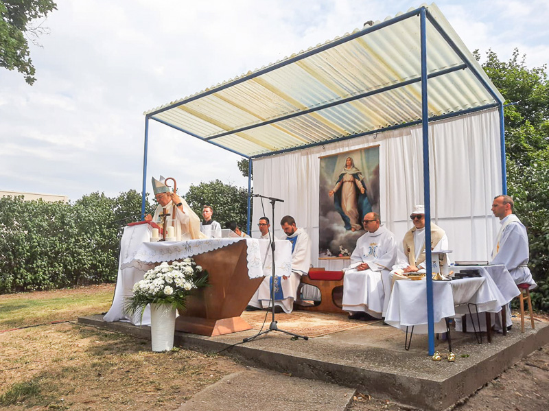 Hodovú svätú omšu v Čepeni, ktorá je súčasťou farnosti Sereď, slávili 17. augusta. Arcibiskup Ján Orosch prítomných aj pútnické miesto zveril pod ochranu Panny Márie. Snímka: Rastislav Svitek