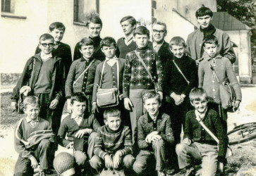Don Anton Jančovič, SDB, zakladateľ saleziánskeho diela v Michalovciach s chlapcami v Rajci. Don Anton je na snímke v treťom rade druhý sprava.