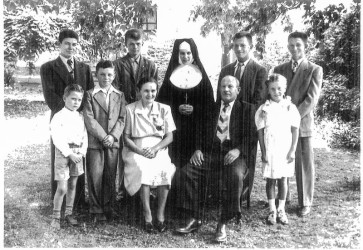 Sestra Emerita Godálová v kruhu rodiny po ukončení rehoľnej formácie v roku 1948 v Ridgetowne.