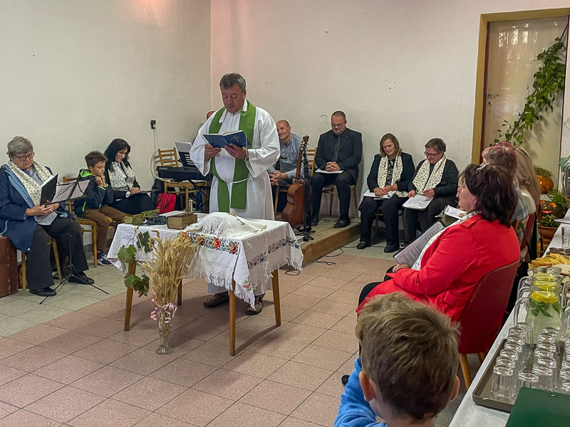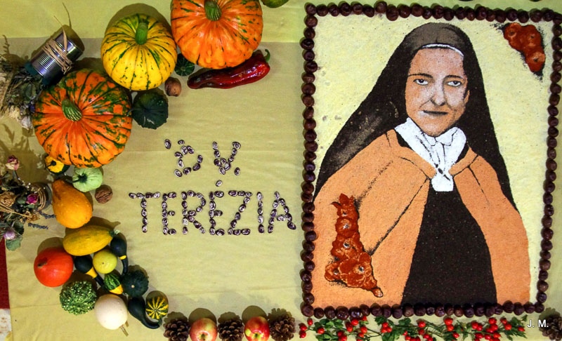 Pri príležitosti poďakovania za úrodu vyzdobili vo Valči kostol sypanými obrazmi. Snímka: Jaromír Meriač