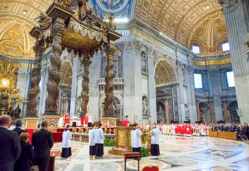 Slovenskí pútnici sa v Bazilike sv. Petra zúčastnili na slávení Eucharistie. Snímka: Peter Dobrovský