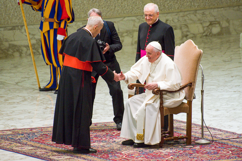 Kardinál Jozef Tomko poďakoval Svätému Otcovi za jeho lásku voči malému Slovensku. Snímka: Peter Dobrovský