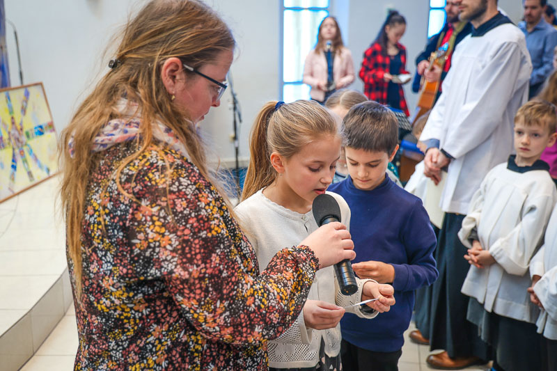 Prvoprijímajúce deti sa zapájajú aj na detských svätých omšiach čítaním prosieb. Snímka: Barbora Kullačová