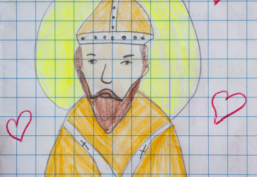 Sv. Vojtecha takto nakreslila Alžbetka J. z Predmieru. Snímka: reprofoto KN