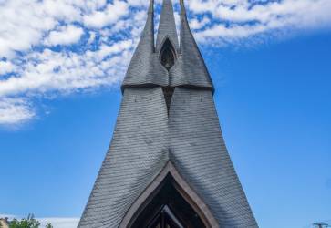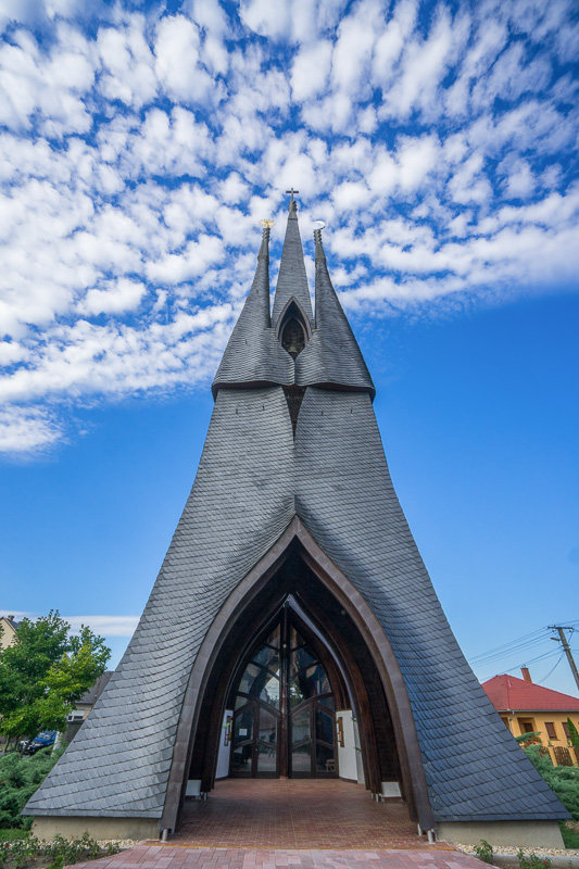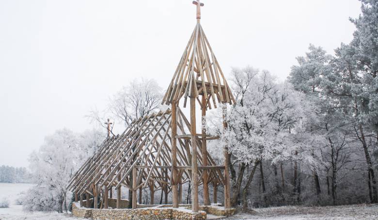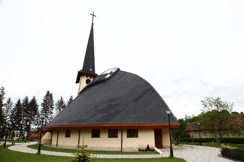 Ekokostol v Debradi, tzv. rastlinný Kostol sv. Ladislava, je dielo architekta G. Tamása z Budapešti. Snímka: archív architekta