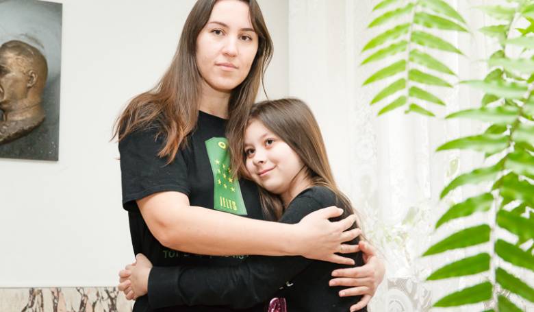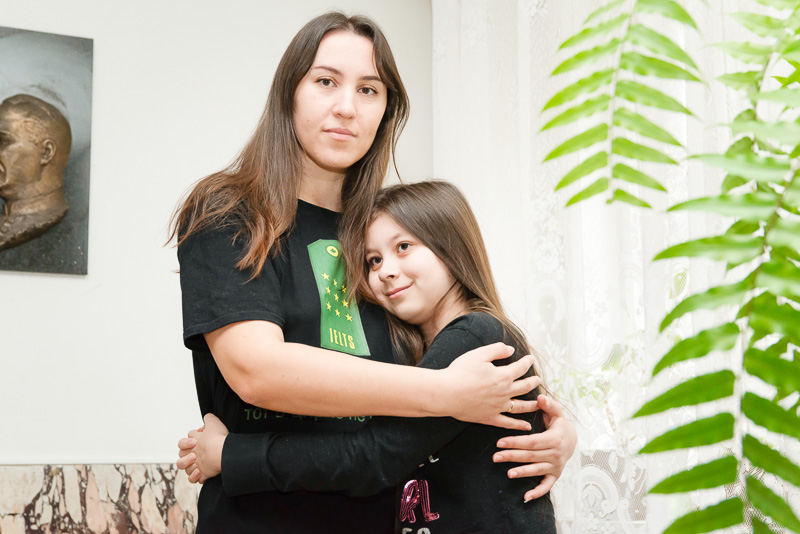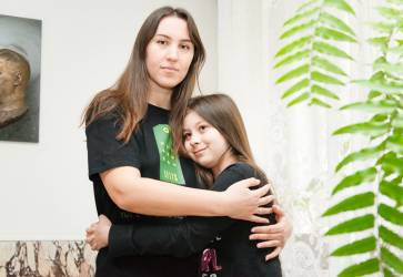 Olesia (39) s Arinou (9) pochádzajú z Mykolajiva, pre eskalujúce napätie sa však ešte pred začiatkom vojny odsťahovali do Užhorodu. Snímka: Erika Litváková
