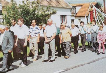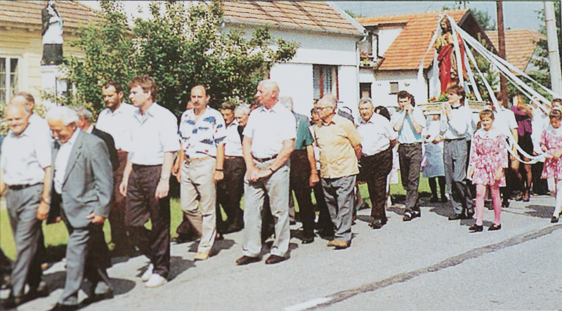 Príprava oltárikov – búdičiek – a účasť na procesii boli vždy prejavom úprimnej viery. Snímka: reprofoto z archívu Bohumila Čambála