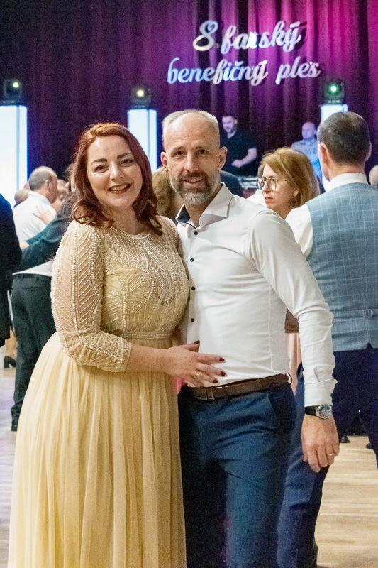„Veľmi sa tešíme, že sa po dvoch rokoch ples opäť obnovil,“ radovala sa Mária Horváthová s manželom. Snímka: KN/Anna Stankayová