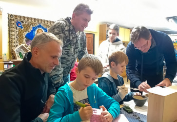 Na fare v Košickej Novej Vsi vznikol modelársky krúžok pre otcov so synmi, kde sa betlehem pre kostol rodil ako spoločné dielo.Snímka: archív Dominika Macáka