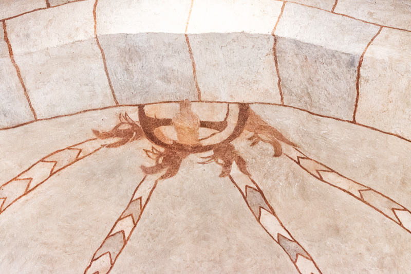 Svorník zdobí žehnajúca ruka Pána. Psie hlavy okolo nej zrejme predstavujú Božiu moc vychádzajúcu na štyri svetové strany. Snímka: Anna Stankayová