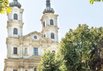 Priečelie chrámu zdobia 4 sochy svätcov zviazaných s pavlínmi – sv. Pavol Pustovník, sv. Anton Pustovník, sv. Augustín, ktorého regulu pavlíni prijali, a sv. Hieronym v kardinálskom klobúku, ktorý napísal životopis sv. Pavla Tébskeho. Snímka: AS