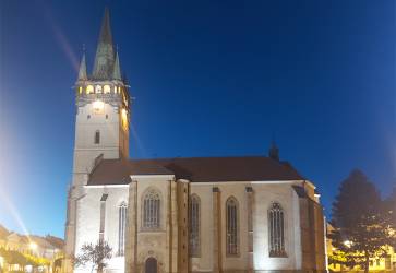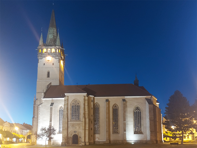 Pohľad na Konkatedrálu sv. Mikuláša v Prešove má svoje čaro aj vo večerných hodinách. Snímka: archív farnosti