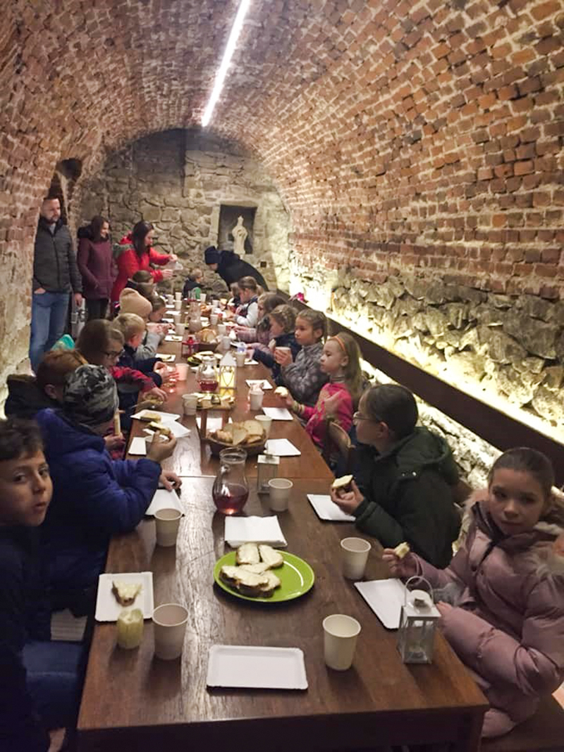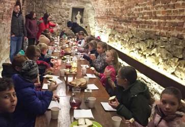 Deti sa od obetnej hostiny presúvajú po rorátnych svätých omšiach k hostine pri spoločnom stole. Snímka: archív eRka