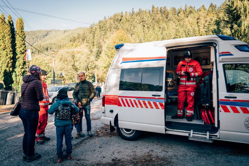 Prvou pomocou ich sprevádzal lekár Viliam Dobiáš a jeho kolegovia z banskobystrického Červeného kríža. Snímka: Erika Litváková
