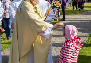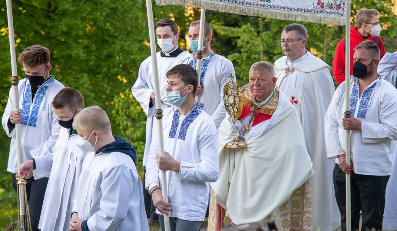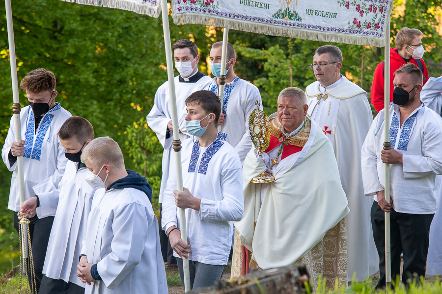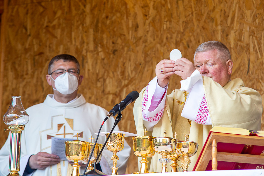 Procesiu s Najsvätejšou oltárnou sviatosťou na frivaldskú kalváriu viedol biskup Viliam Judák. Snímka: Juraj Zbýňovec.