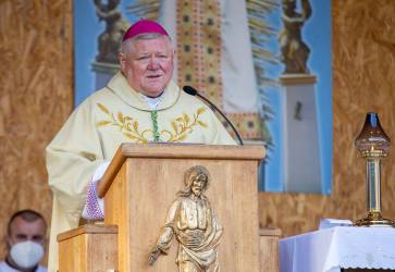 Hlavným celebrantom svätej omše bol nitriansky biskup Viliam Judák. Snímka: Juraj Zbýňovec