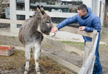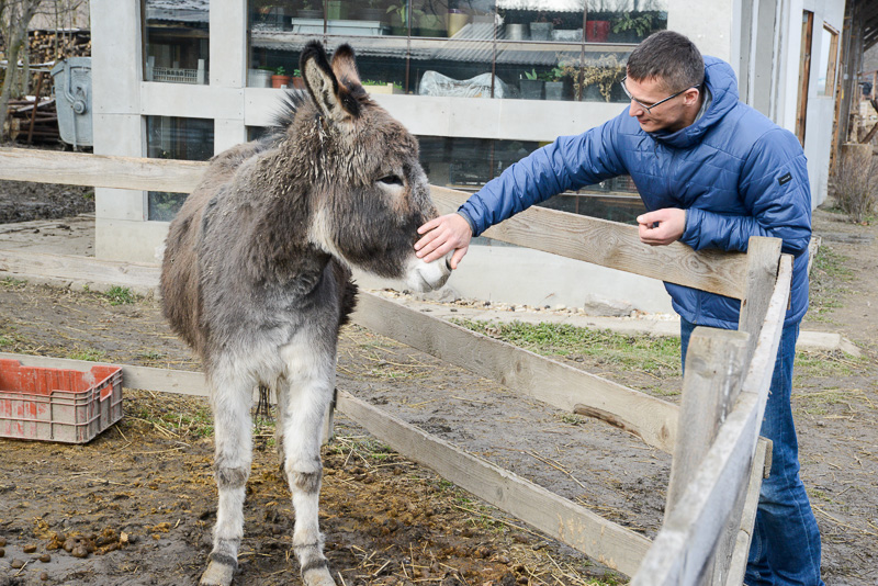 Chlapci si vytvorili vzťah aj k zvieratám. Výnimočný je pre nich aj tento oslík, ktorý sa nám už z diaľky „prihováral“. Snímka: KN/Erika Litváková