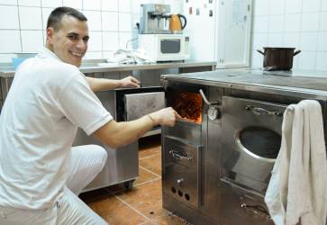 Naučili sa tiež variť na piecke vykurovanej drevom. Zároveň im poslúži aj na vykurovanie celého domu. Snímka: KN/Erika Litváková