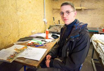 Marcela sme stretli v dielničke, kde kreslil ilustrácie na spoločnú nástenku. V komunite objavil skrytý talent, ako aj ostatní. Snínmka: KN/Erika Litváková