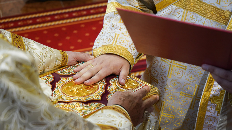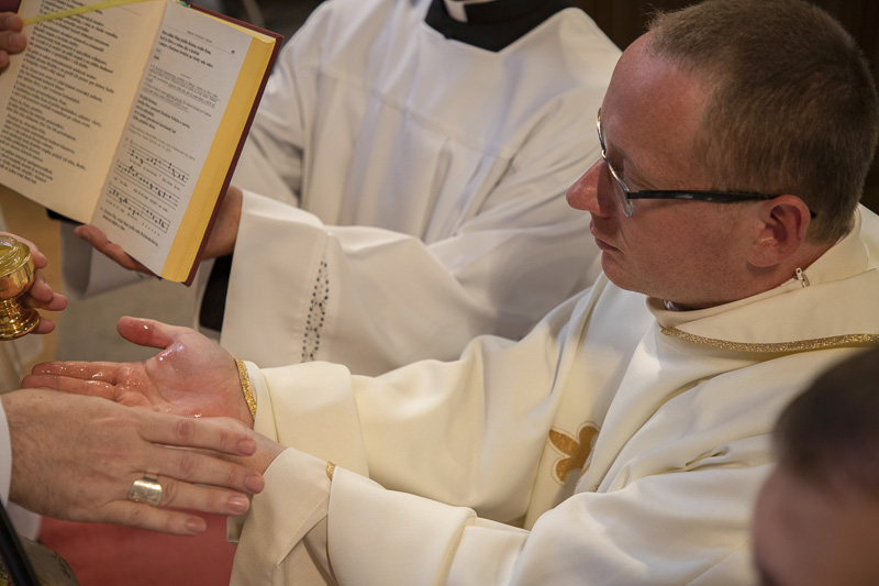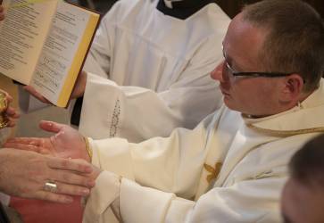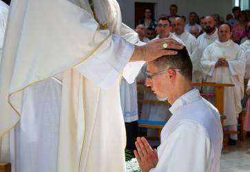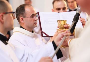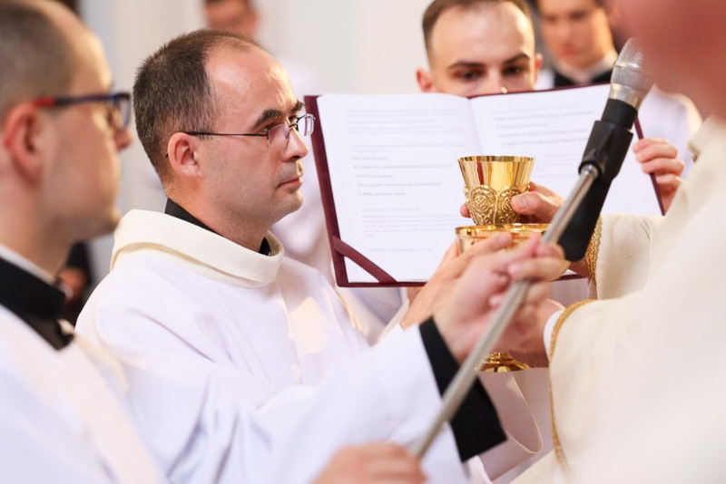 V Kostole sv. Vincenta de Paul trnavský arcibiskup Ján Orosch vysvätil za kňazov Patrika Boržeckého, CM, a Petra Majerčíka, CM (na snímke). Snímka Andrej Mjartan