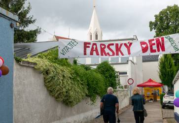 Farský deň v Podunajských Biskupiciach prilákal miestnych veriacich i napriek rannému dažďu. Snímka: Erika Litváková
