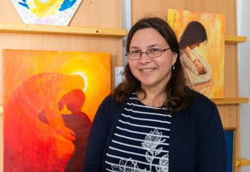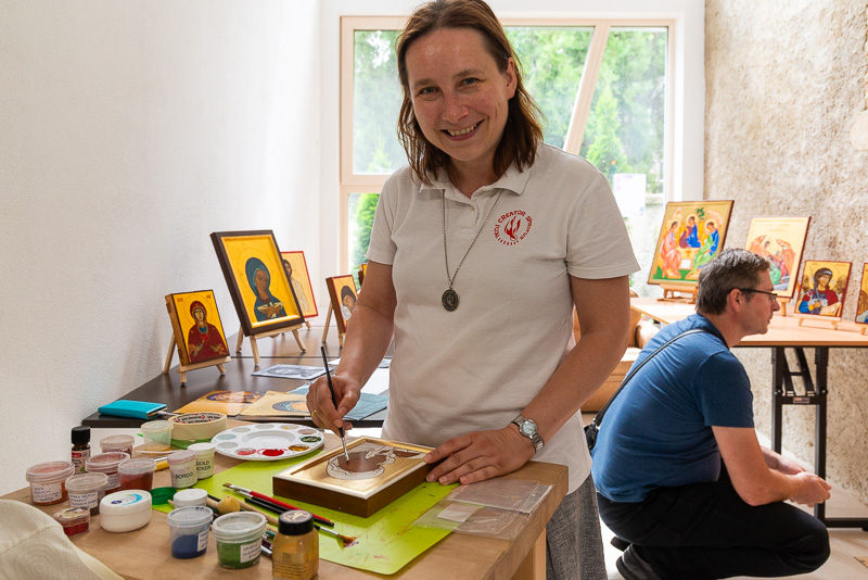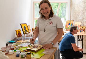 Sociálna sestra Zuzana Škrinárová má blízky vzťah k ikonopisectvu. Tvorba ikony je pre ňu modlitba, preto na ňu potrebuje ticho a pokoj. Snímka: Erika Litváková