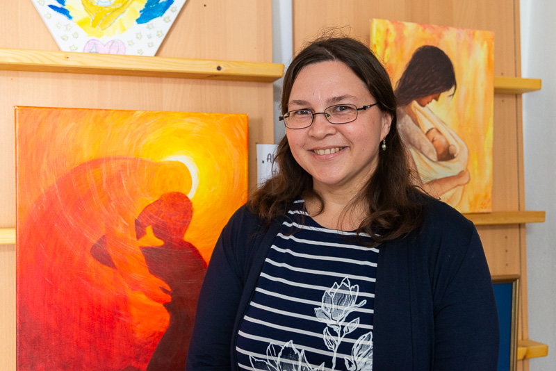 Farníčka Silvia Láslová stíha popri piatich deťoch aj maľovať a vyrábať ružence. Snímka: Erika Litváková