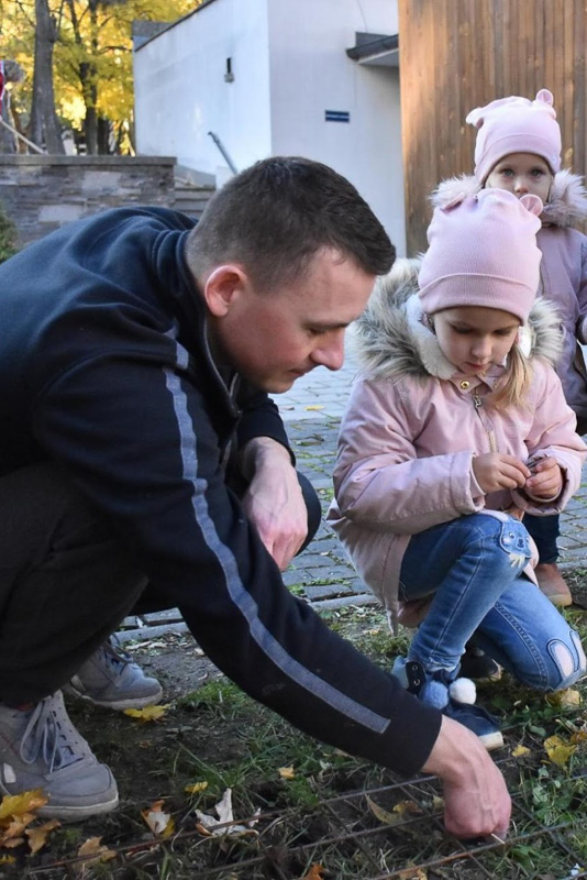 Pred kostolom spoločne vysadili viac ako tisíc tulipánových cibuliek. Snímka: archív farnosti Teplická-Kráľovnej rodiny