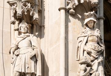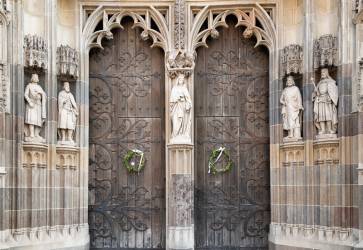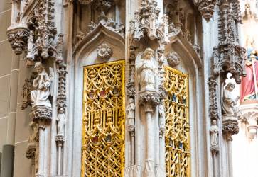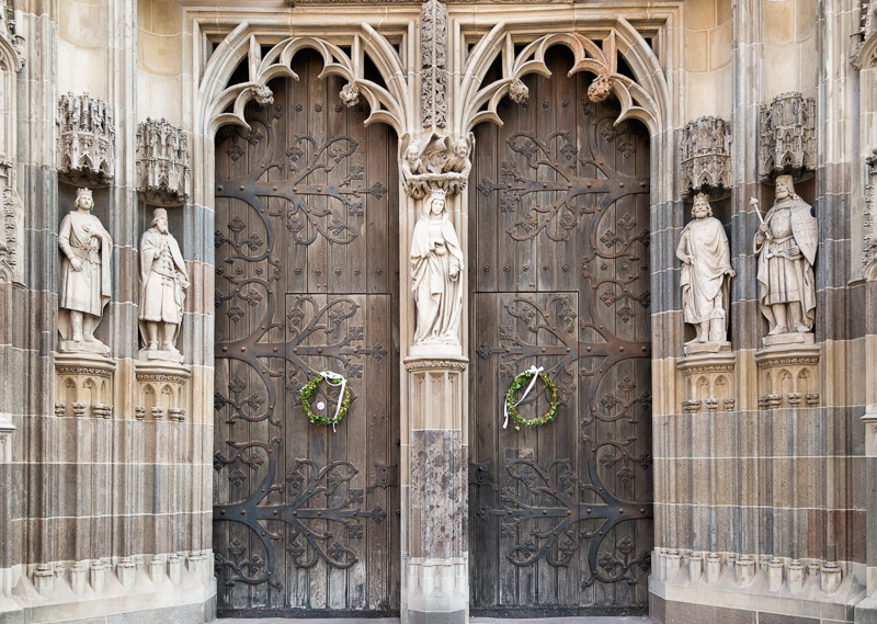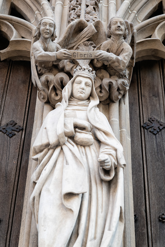 5. Neogotické sochy svätcov pri pilieroch predsiene južného portálu pochádzajú z 19. storočia. Snímka: Erika Litváková