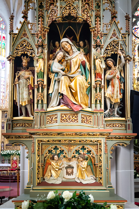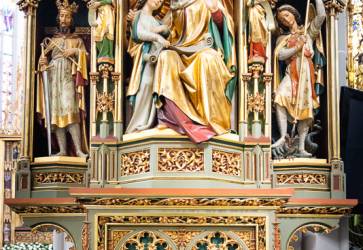 7. Neogotický oltár sv. Anny patrí medzi novšie, pochádza z roku 1896. Znázorňuje sv. Annu, ktorá vyučuje malú Pannu Máriu. Snímka: Erika Litváková