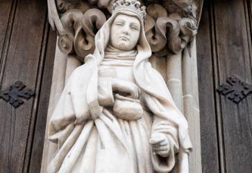 3. Dva vstupy v severnej časti oddeľuje stĺpik s neogotickou sochou sv. Alžbety Uhorskej.Snímka: Erika Litváková