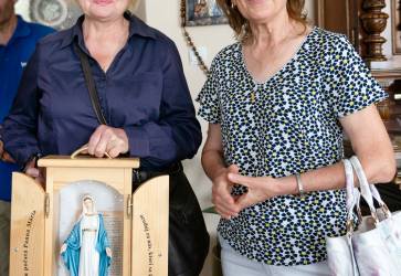 Mária Vörösová (vľavo) a Janka Balážiová sa vo farnosti snažia rozvíjať vzťah farníkov k Panne Márii. A to hlavne putovaním kaplniek Panny Márie zázračnej medaily. Snímka: Erika Litváková