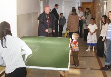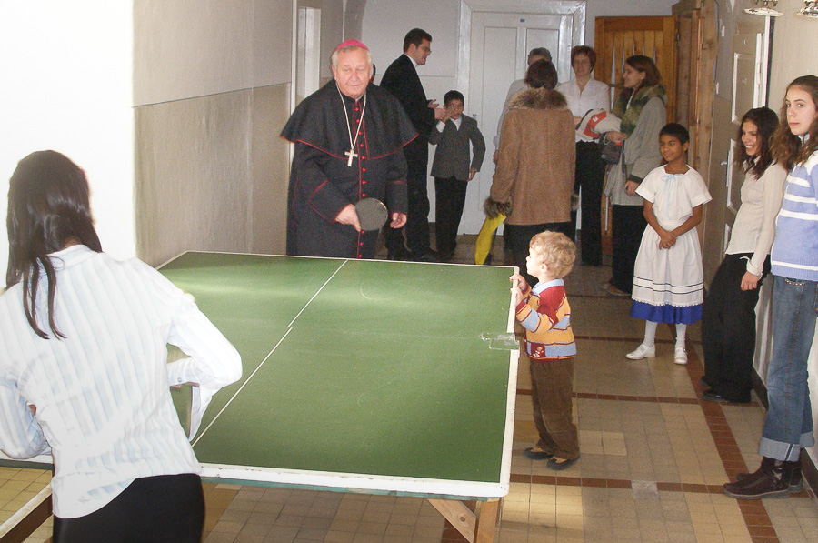 V Detskom domove sv. Klementa Hofbauera v Podolínci, ktorý v roku 2006 zriadilo Spišské biskupstvo, Štefan Sečka neváhal na návšteve v januári 2007 chytiť do ruky pingpongovú raketu. Snímka: -TK KBS-/Václav Hypius