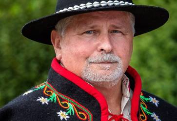 Pavel Žmijovský na dôchodku našiel záľubu v šití ľudových krojov. Všetci Lendačania si dávajú ušiť alebo opraviť svoj kroj u neho. Snímka: archív rodiny Žmijovských