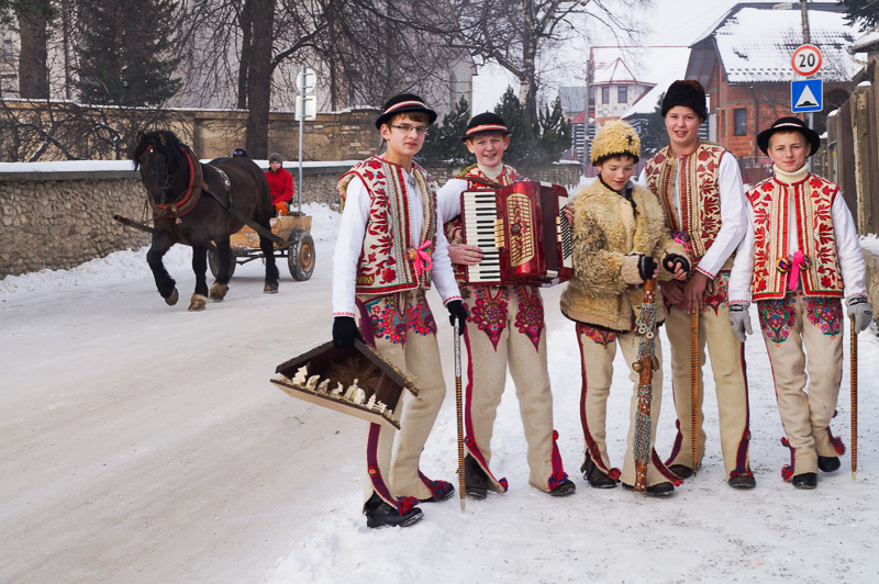 Koledovanie mladých pastierov od domu k domu s goralskými koledami sa nazýva sôpka. Snímka: archív obce Lendak