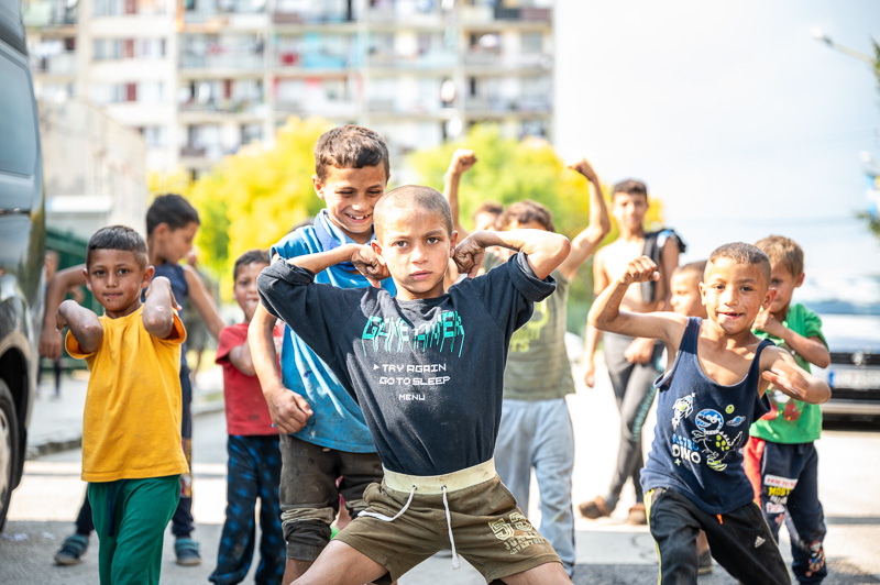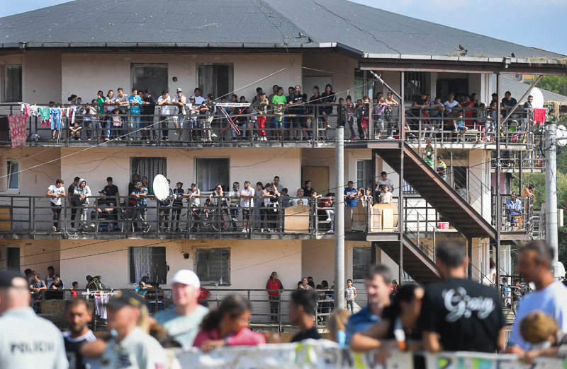 Rómovia na sídlisku Luník IX spontánne vítali pápeža Františka. Snímka: TASR/TKKBS/František Iván