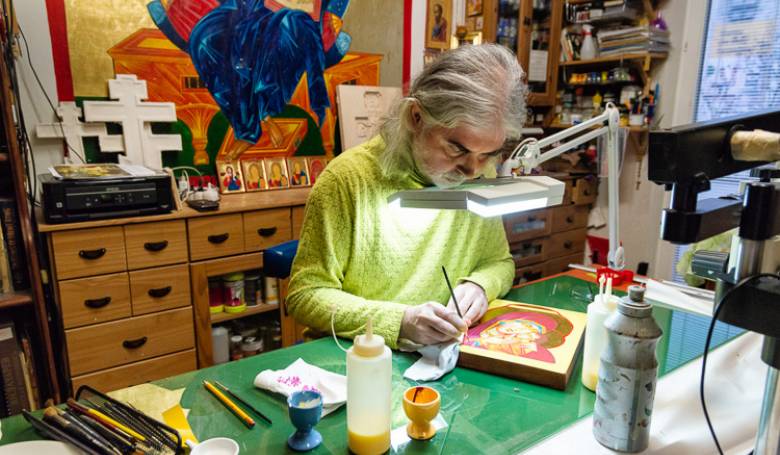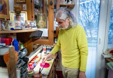 V priestore dielne má Ladislav Németh pre tvorbu ikon všetko poruke.
